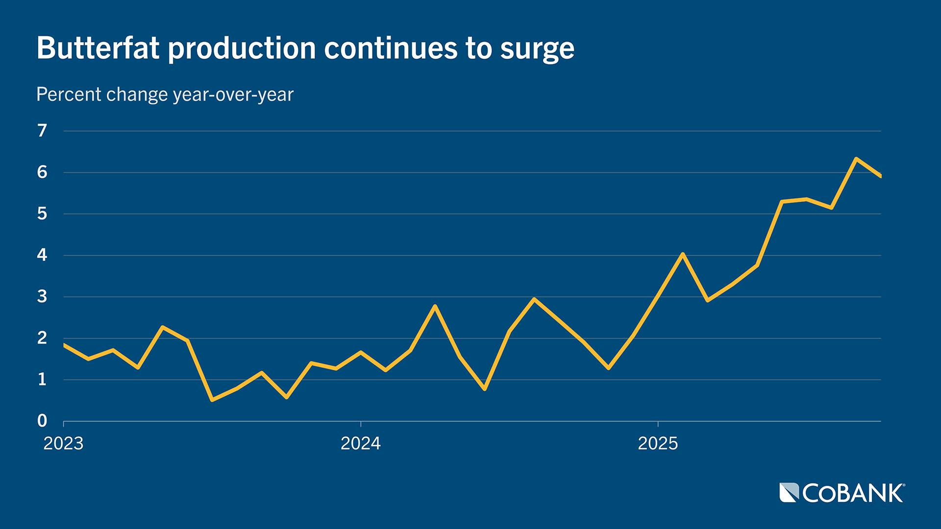 • While demand for full-fat dairy products remains strong, butterfat has moved to an oversupply with 5% to 6% gains in the past five months.