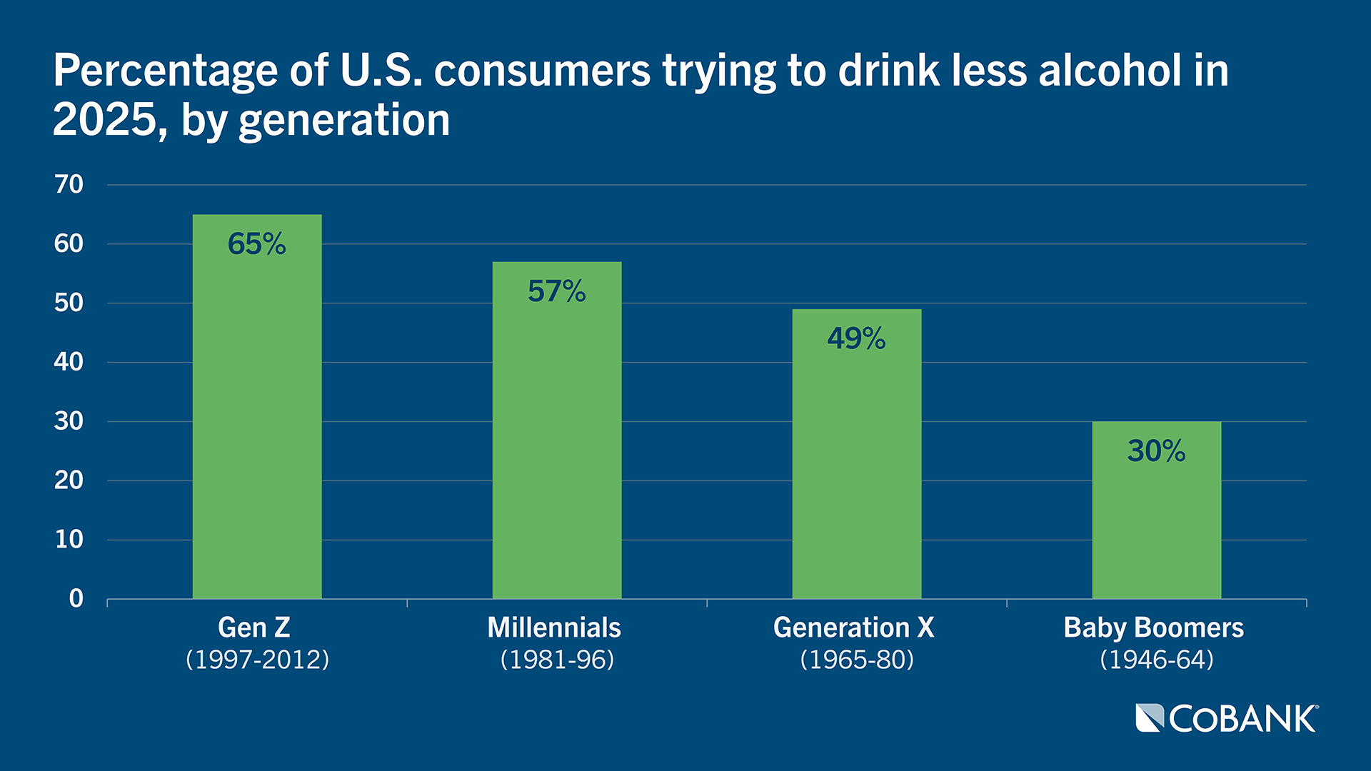 More than 4 out of 10 (41%) of U.S. consumers are working to moderate their alcohol consumption, with Gen Z and Millennials at the forefront. Gen Z consumes roughly 20% less alcohol than even Millennials on average, according to International Wine & Spirits Record data. “Dry January” has grown increasingly popular as consumers recover from New Year’s and the holidays by eliminating alcohol, which may be as much an ambition to recover economically as to avoid alcohol. For that matter, recent Januaries have seen notable declines in restaurant foot traffic, again pointing to pocketbook recovery as a potential benefit for consumers to go “dry.”